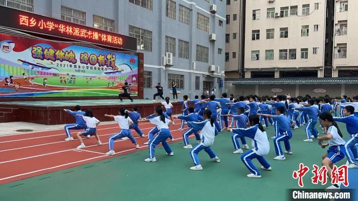 深圳市寶安區(qū)西鄉(xiāng)小學的學生們在練習華林派武術操 西鄉(xiāng)小學 供圖