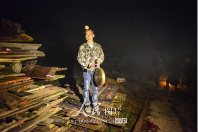 新娘之所以“不落夫家”,一是仍要報(bào)答父母的養(yǎng)育之恩;二是舍不得童年伙伴,還要回到寨子里與伙伴們伴做伴,最長(zhǎng)可達(dá)三年之久;直到同伴都有了對(duì)象才分散,新娘方到新郎家長(zhǎng)住下去,這樣的奇趣婚俗也在黔東南的一些侗族地區(qū)一直得以保存下來(lái)。圖為11月17日凌晨,新郎家派來(lái)的娶親隊(duì)伍點(diǎn)著火把前來(lái)娶親。