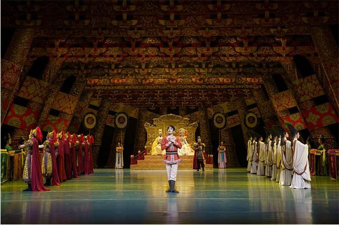 “大家可以看到,在這部舞劇中既有非常濃郁的盛唐風格,也有非常鮮明的西域文化特點?!蔽鑴 秱鹘z公主》總導(dǎo)演左青表示。舞臺上的每一幕都有情景定位、情節(jié)助推、情感渲染、情調(diào)濡潤,兼具依托文本結(jié)構(gòu)的真情訴說和舞蹈本體的詩意表達,構(gòu)建起舞劇的整體形式感。
