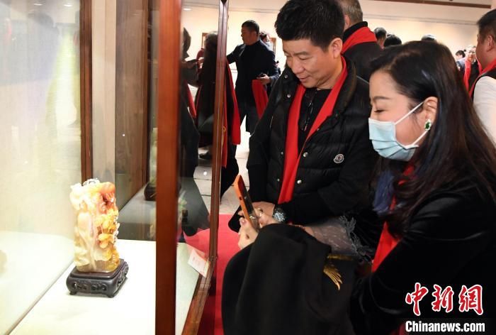 中國工藝美術(shù)大師葉子賢壽山石雕傳承展吸引觀眾觀看?!∮浾邉⒖筛?攝