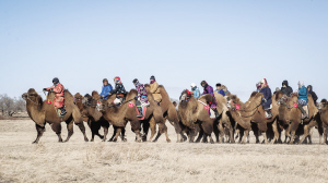 牧民們在進行賽駱駝。 管永新攝影