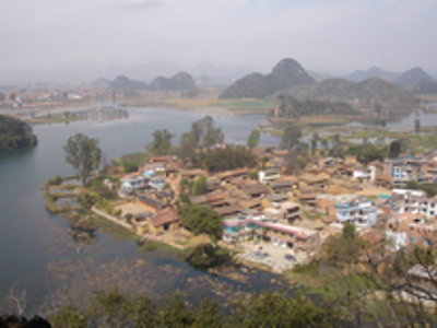 在一次學術(shù)會議上,筆者請教了首倡并主導“民族文化生態(tài)村”試點建設(shè)的尹紹亭教授,得知在他們首期的五個試點村落建設(shè)中,仙人洞村是比較成功的,于是在本項目的調(diào)查中,仙人洞村成為重點考察的對象之一。“仙人洞彝族文化生態(tài)村”位于云南丘北縣城西北16公里的普者黑湖畔?!捌照吆凇睘楫?shù)匾妥迦瞿嵴Z,意為“魚蝦多的湖潭”。普者黑實際是由眾多湖泊、河流構(gòu)成,總面積達165平方公里,已經(jīng)開發(fā)成由5個景區(qū)、56個景點組成的滇東南國家級著名旅游景區(qū)。