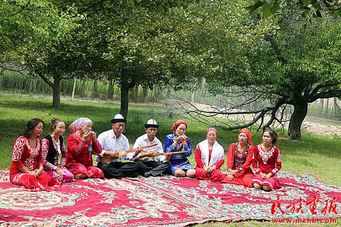 據(jù)色帕巴依鄉(xiāng)黨委委員阿依木古麗·艾山卡德介紹,該鄉(xiāng)在鄉(xiāng)中心小學(xué)專門開設(shè)課程教學(xué)生學(xué)彈庫姆孜琴,并積極舉辦“我為庫姆孜代言”活動,積極培養(yǎng)庫姆孜傳承人。此外,鄉(xiāng)里還專門組建有庫姆孜彈唱隊。“我們利用百日文化廣場和日常的演出走村串巷,積極參加縣宣傳部開展的各項文體活動。今年2月開展的群眾大會,把庫姆孜音樂重新填詞,配合惠民政策宣傳,將傳播民族文化與群眾思想政治工作相結(jié)合?!蓖瑯?,在烏恰縣吾合沙魯鄉(xiāng)恰提村,當(dāng)?shù)伛v村工作隊積極組織20名返鄉(xiāng)學(xué)生開辦“庫姆孜彈唱文藝培訓(xùn)班”,廣泛調(diào)動返鄉(xiāng)大學(xué)生加入到文化傳承的行列中。