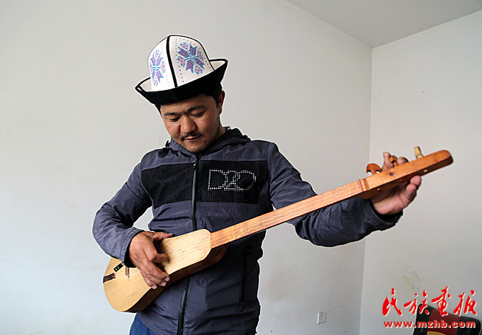 走進(jìn)新疆克孜勒蘇柯爾克孜自治州阿合奇縣色帕巴依鄉(xiāng)色帕巴依村,一排排房屋整齊有序,沿路花壇里開著叫不上名的花,藍(lán)天映照下,顏色格外鮮艷。走進(jìn)一間普通民居,一個柯爾克孜小伙兒正埋頭打磨著一把木質(zhì)樂器,這正是柯爾克孜族的傳統(tǒng)樂器——庫姆孜。房間里擺著一溜兒木質(zhì)雕刻的半成品。