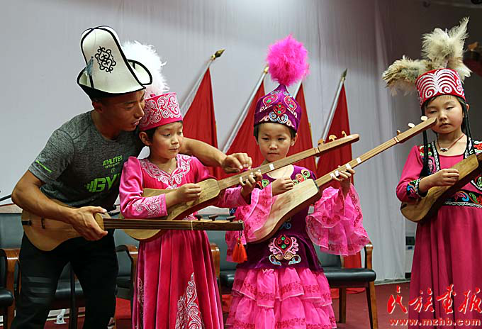 沙力哈爾別克·玉山巴依利用暑假教孩子們彈庫姆孜