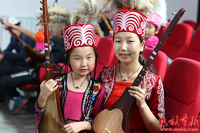 學(xué)彈庫姆孜的柯爾克孜族兩姐妹