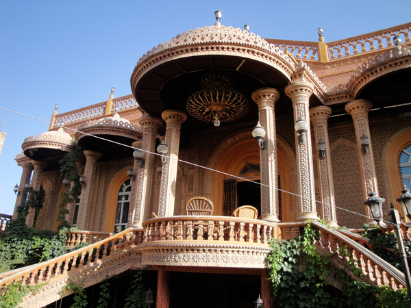 維吾爾族的建筑物有其獨(dú)特風(fēng)格。房屋方形,有較深的前廊;室內(nèi)鑿壁龕,并飾以各種花紋圖案。舊式房屋多系土木結(jié)構(gòu),窗子較小,房頂開一個(gè)窗,通風(fēng)采光差;室內(nèi)進(jìn)門有一連灶土炕,用來(lái)做飯取暖。平房一般比較講究寬敞明亮通風(fēng)。廳室布置整潔樸雅,四壁呈白色泛藍(lán),掛的壁毯,靠墻置床,被褥均展鋪于床罩或毛毯之下,床上只擺設(shè)一對(duì)鏤花方枕。室中央置長(zhǎng)桌或圓桌,家具及陳設(shè)品多遮蓋有鉤花圖案的裝飾巾,門窗掛絲絨或綢類的落地式垂簾,并襯飾網(wǎng)眼針織品。地面多裝飾民族圖案。維吾爾族人喜歡在庭院中種植花卉、果樹和葡萄,整個(gè)環(huán)境顯得雅靜、清新。