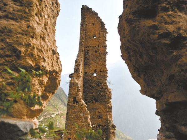 最讓楊慶平感到可惜的是寨子里的碉樓。在他的印象中,寨子周邊有7座碉樓,修建得非常堅固,上面有觀察孔和射擊孔,通過木梯可以登上二三十米高的碉樓云臺,登高遠眺,大寨內(nèi)外盡收眼底。現(xiàn)在只剩下一座碉樓矗立在天地之間,高40多米,上面長滿了雜草。