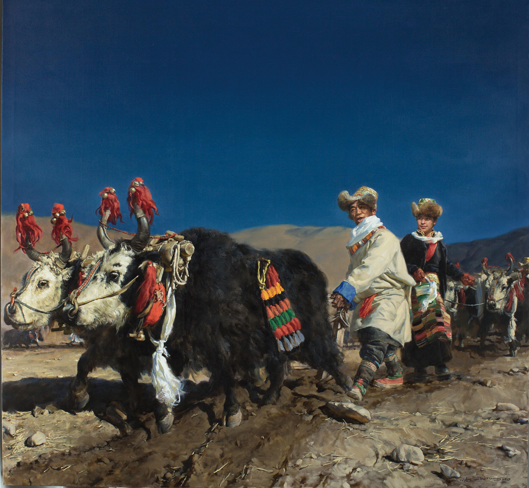 農業(yè)。藏區(qū)的主要農作物有青稞、小麥、豌豆、油菜、蕎麥等。過去,藏族的農業(yè)區(qū)生產工具比較落后,傳統(tǒng)的耕地方式是“二牛抬杠”。即在犁的前轅上拴一橫杠,橫杠兩頭分別固定在兩頭牛的脖頸上,一人扶犁并揚鞭趕牛犁地。舊時,木犁的犁尖由堅硬的青岡木做成,入土兩三寸,有的地方在木犁尖是套上鐵犁尖,入土更深。藏區(qū)的川壩地比較肥沃,可以連年耕種,山坡地較貧瘠,種兩年就要休耕一年,名曰歇地。