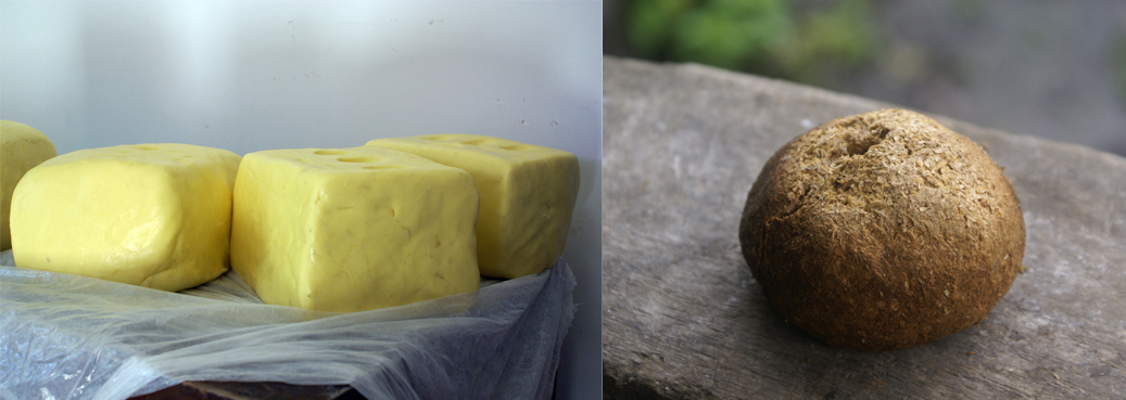 珞巴族各部落的食物大多以谷類為主,主食有玉米、雞爪谷、粟米、青稞、高粱、蕎麥等,尤以玉米、雞爪谷為主。另外,“達(dá)榭”和“達(dá)薺”也是許多珞巴族部落主要的食物來源。“達(dá)榭”和“達(dá)薺”是淀粉含量很高的野生植物,經(jīng)過較復(fù)雜的加工,能提取出淀粉,即人們?nèi)粘J秤玫倪_(dá)榭粉,食用方法仍是調(diào)成糊狀或者烙餅。除了上述的主要食物外,珞巴族人還愛吃一些植物根莖,如土豆、山芋等,一般放入火塘中烘烤或者煮食。
