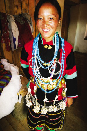 穿上珞巴族婦女傳統(tǒng)服飾的群宗喜上眉梢