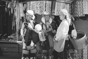 沒約人,我獨(dú)自開車從臨滄市繞道南美,才發(fā)現(xiàn)那是一次穿越。一座無名的山上仍然有遮天蔽日的森林,等我從森林里出來,拉祜族村子就在眼前了。一位騎著摩托車的女孩才十八九歲吧,趕著一大群羊,從山上回家,嘴里含著葉子,吹奏出動聽的小曲。兩位抽著旱煙的拉祜族婦女,背著沉重的柴禾走在路上。街市并不大,十多家商鋪賣著現(xiàn)代的生活用品,幾家小餐館里擠滿了人。