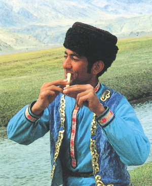 吹鷹笛的塔吉克男子