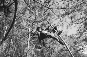 此外,如碗口粗的松樹(shù)是最好搖蕩的,太粗的樹(shù)枝彈性不好,太細(xì)的樹(shù)枝又承受不了人體之重。至于距離,樹(shù)與樹(shù)之間伸手可及是最好攀爬的,但相隔四五米遠(yuǎn)的樹(shù)也能扳彎身處的樹(shù)木蕩過(guò)去。