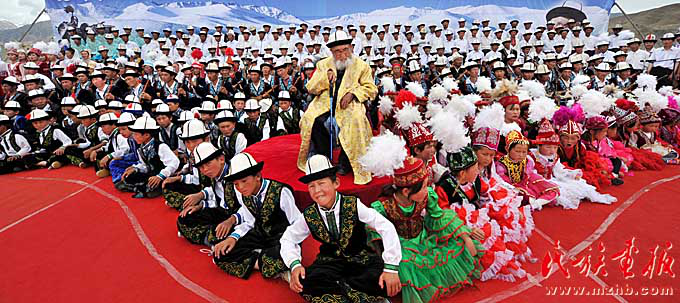 一部悠長、渾厚、動(dòng)人的英雄史詩,一頂象征高山雪峰的白氈帽,一把古老的三弦彈撥樂器庫姆孜,以及五彩繽紛的刺繡、花氈,灑落在草原深處的氈房,千百年來,古老的帕米爾高原不僅孕育了雄偉挺拔的山川和茫茫無垠的戈壁,更積淀了源遠(yuǎn)流長、絢麗多彩的歷史和文化。