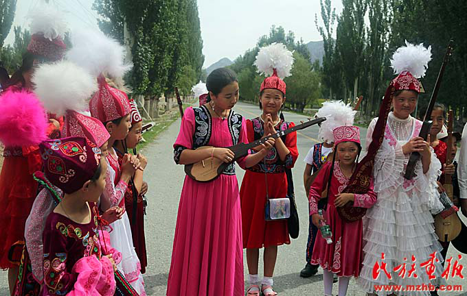 色帕巴依鄉(xiāng)是“中國民間文化藝術(shù)之鄉(xiāng)”。據(jù)色帕巴依鄉(xiāng)黨委委員阿依木古麗 . 艾山卡德介紹,該鄉(xiāng)在鄉(xiāng)中心小學(xué)專門開設(shè)課程教學(xué)生彈庫姆孜琴,并積極舉辦“我為庫姆孜代言”活動(dòng),積極培養(yǎng)庫姆孜傳承人。此外,該鄉(xiāng)還專門組建庫姆孜彈唱隊(duì)?!拔覀兝冒偃瘴幕瘡V場和日常的演出走村串巷,積極參加縣宣傳部開展的各項(xiàng)文體活動(dòng)。2017年2月開展的群眾大會(huì),把庫姆孜音樂重新填詞,配合惠民政策宣傳,將傳播民族文化與群眾思想政治工作相結(jié)合?!?/p>
