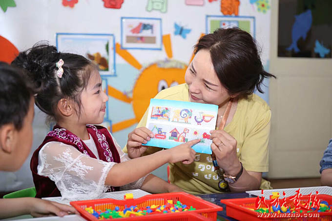 古麗孜娜提說(shuō),在她兒時(shí)記憶中,縣里的幼兒園、小學(xué)和中學(xué),只有幾排墻皮斑駁的平房和破桌椅。因條件太差,父母都想方設(shè)法將子女送到數(shù)百里外的城市讀書(shū)?,F(xiàn)在,幼兒園里,語(yǔ)音室、科學(xué)活動(dòng)室、舞蹈室等一應(yīng)俱全,雙語(yǔ)教師、保育員等人員也按相應(yīng)比例配備到位??h交通部門(mén)還安排兩輛專線車每天免費(fèi)接送第三幼兒園師生。能在條件這么好的幼兒園工作,她感到由衷的欣慰,同時(shí)也感到了壓力。