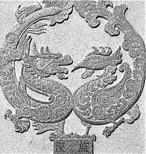 龍鳳從原始社會時期就作為大自然神秘力量的象征受到崇拜。到了封建社會,龍鳳是皇權的標志,龍是皇帝的化身,鳳則為皇后的化身。皇帝的容貌、身體、服裝、座位、床鋪等等都冠“龍”字,如真龍?zhí)熳?、龍體、龍床。而與皇后有關的事物,則往往冠以鳳字,如鳳冠、鳳輦、鳳樓等等。漢民族對龍鳳的崇拜,滲透到生活的各個領域,形成一系列特殊的傳統(tǒng)習俗。人們相信龍能夠變化飛騰,行云布雨,大旱之年常舉行求龍降雨的儀式。元宵節(jié)耍龍燈,端午節(jié)龍舟競渡等民間習俗的形成也都與龍的崇拜有關。由于龍的形象威武嚴肅,象征個性的堅毅剛強,所以漢族民間喜以“龍”作為男性的命名;而鳳的形象艷麗優(yōu)美,象征女性的美貌溫柔,民間又有喜以“鳳”作為女性命名。由于人們對龍鳳的崇拜,千百年來,龍鳳形象的紋飾遍見于繪畫、工藝美術、雕刻、建筑裝飾以及民間文藝創(chuàng)作之中,成了漢族傳統(tǒng)文化的象征。龍鳳呈祥圖案是受人喜愛的一種吉祥圖案。在畫面上,龍鳳各居一半。龍是升龍,張口旋身,回首望鳳;鳳是翔鳳,展翅翹尾,舉目眺龍。周圍瑞云朵朵,一派祥和之氣。龍鳳呈祥圖案象征高貴、華麗、祥瑞、杰出。