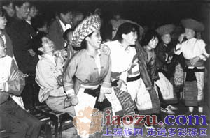 隨著陣陣高漲的歡笑、叫喊,人們躁動了。坐在男人們腿上的姑娘,一個個彈而跳起,又重重地落下來,坐到男人們的腿上。如此蹾下又跳起,跳起又蹾下,在一片歡叫聲中反復(fù)地循環(huán)。