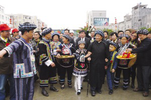 望謨布依寨老和小朋友迎接各位領(lǐng)導(dǎo)、朋友、嘉賓進(jìn)入活動(dòng)會(huì)場(chǎng)