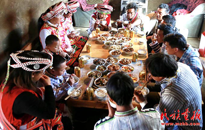“過去我們一家吃除夕團圓飯,有點肉就不錯了,哪會有如此豐盛的宴席。你看如今這滿桌子十幾道菜,吃不完、喝不完,全靠黨和國家的政策好啊。”在談到春節(jié)的變化時,云南省維西傈僳族自治縣保和鎮(zhèn)臘八底村的蜂大興深有體會。
