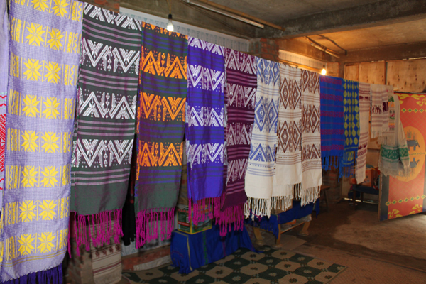 云南傣錦歷史悠久,風格古樸,以其織工精巧、圖案別致、色調(diào)鮮艷、堅牢耐用和富有民族特色而著稱。它主要流傳和盛行于云南省南部的西雙版納傣族自治州,西南部的德宏傣族景頗族自治州、耿馬傣族佤族自治縣、景谷傣族彝族自治縣,以及孟連傣族拉祜族佤族自治縣等傣族較聚居的區(qū)域。云南傣錦是一種以絲線、毛線、棉線、麻線、晴綸線、金絲線等材料為原料,采用傣族傳統(tǒng)的木架織機手工操作,經(jīng)提花、織造等工藝形式制作成的長條形織錦物,是云南的傣族人民從事宗教活動和美化生活必不可少的物品。傣錦長短不一,幅寬一般為20-60厘米不等。因其花紋絢麗多彩、形象生動、變化多端 、呈立體形,在云南少數(shù)民族織錦中獨樹一幟,享有很高的聲譽。傳統(tǒng)的云南傣錦按構(gòu)成形式和材料主要有兩種即西雙版納傣錦和德宏傣錦。西雙版納傣錦以白色為底,用紅色和黑色緯線織成花紋,傣錦線條寬窄有致,形體夸張簡練,圖案較為規(guī)律化,具有粗獷的質(zhì)樸感和濃厚的裝飾性;而德宏傣錦則色調(diào)較為濃重,常用黑、紅、翠綠、黃、藍等濃艷色彩的絲線和棉線摻用金絲錦線織制,圖案以菱形、方形、六角形及回形紋等幾何形為主,織錦鮮艷奪目,結(jié)構(gòu)嚴謹,紋飾古雅,尤顯華麗。