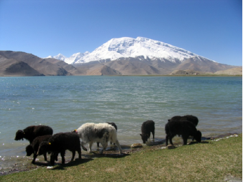 塔吉克人民生活在雪嶺冰峰之下,河流兩岸的谷地,這里不僅有連綿成片的草原山區(qū),也有可供稼穡的平原。他們主要從事畜牧業(yè),與此同時,他們也兼營農(nóng)業(yè),過著半定居半游牧的生活。