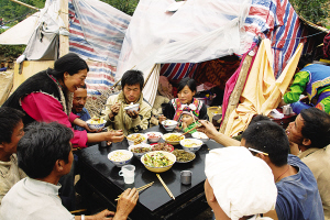 蘿卜寨村民一家震后的晚餐 陳鼎波/攝
