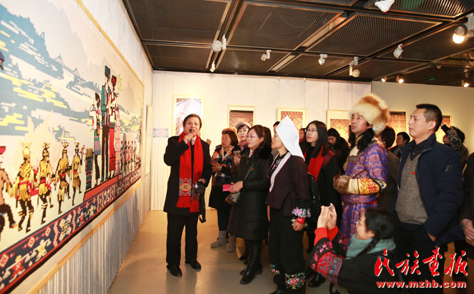 會上中國民族博物館黨委副書記、副館長張志文向少數(shù)民族作家們介紹了展覽,他說:“土家族是一個歷史悠久的民族,現(xiàn)在有835萬人口。土家織錦也有兩千多年的發(fā)展歷史,有250多種傳統(tǒng)圖案,是中國民間五大織錦之一,堪稱中國服飾文化中的奇葩。中國民族博物館從歷年征集收藏的300多幅清代以來的土家織錦中,選取了156幅精品土家織錦、21分鐘傳承人視頻和120余幅土家民族風(fēng)情照片。我們和中國婦女兒童博物館合作舉辦了這個高品質(zhì)的專題展,旨在傳承和弘揚(yáng)土家族國家級非物質(zhì)文化遺產(chǎn)?!?/p>