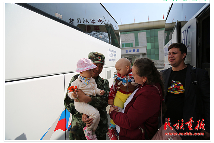 第一次來琿春旅游的俄羅斯游客亞娜帶著她1歲的寶寶剛?cè)刖?,恰巧遇到帶孩子出來的中國邊防?zhàn)士,他們便打起了招呼