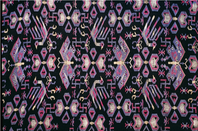 亳無(wú)疑問(wèn),蝴蝶圖騰即是對(duì)蠶的崇拜,蠶文化原初的核心便是人歸途的儀式,人要在這種和蠶一祥的儀式中得到再生。今天的苗族,仍然保持著以絲綢裹身而葬的喪葬習(xí)俗。我祖母養(yǎng)蠶織就的絲織品,我們習(xí)慣稱(chēng)作蠶絲床單,絕大部分是備著喪葬所用。凡有人去世,主客必送一床蠶絲單,沒(méi)有是不行的,被視為不懂禮節(jié),而死者獲得蠶絲單越多越好。有的人家收到的蠶絲單過(guò)多,就會(huì)保存一部分,留著將來(lái)的喪事送禮。苗族每個(gè)人都必備一件絲質(zhì)壽衣。并且,在許多重大的儀式活動(dòng)中必須要著絲綢服裝。比如在苗族重大的鼓藏節(jié)期間,鼓社頭必須穿絲織鼓社服;大祭典活動(dòng)時(shí),祭師也必須穿絲質(zhì)服裝等等。