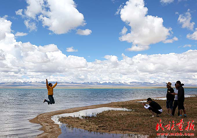 在瀾滄江源頭觀光的桑吉一家