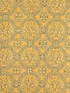 作品紋樣取材于漢、唐、宋、明、清時代的傳統(tǒng)蜀錦紋樣,采用的原料為純天然綠色纖維——染色桑蠶絲和粘膠棉漿絲。該織錦充分體現(xiàn)出蜀錦面料的色彩艷麗與富麗華貴。