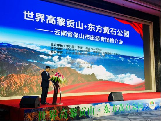 2019年4月10日,“世界高黎貢山·東方黃石公園”保山旅游專場(chǎng)推介會(huì)在成都市召開(kāi)。成都和保山兩地旅游界、航空界、新聞界的嘉賓300多人出席推介會(huì)。保山市人民政府副市長(zhǎng)宋光興、成都市人民政府副秘書(shū)長(zhǎng)唐章昭出席推介會(huì)并致辭。宋光興副市長(zhǎng)指出,成都素有“天府之國(guó)”的美譽(yù),自然風(fēng)光雄奇險(xiǎn)秀,民族風(fēng)情多姿多彩,巴蜀文化積淀深厚,革命歷史可歌可泣,川菜享譽(yù)四方,川劇獨(dú)具魅力,旅游資源得天獨(dú)厚,是一座傳統(tǒng)與現(xiàn)代結(jié)合得最好的城市,是“一座來(lái)了就不想離開(kāi)的城市”。高黎貢山作為全球生物多樣性最富集的地區(qū),有高等植物4897種,動(dòng)物2389種,垂直高差達(dá)4000多米,幾乎分布有中國(guó)除沙漠之外的所有陸地氣候類型,是國(guó)家級(jí)自然保護(hù)區(qū),是世界公認(rèn)的地球上最重要的“物種基因庫(kù)”、是具有國(guó)際重要意義的“世界生物圈保護(hù)區(qū)”,是“三江并流”世界自然遺產(chǎn)的重要組成部分。高黎貢山獨(dú)特的地質(zhì)地貌孕育了保山宜人的氣候、優(yōu)良的生態(tài)、富集的溫泉、秀美的風(fēng)光、多彩的文化和富饒的物產(chǎn),使保山成為云南新興的旅游熱點(diǎn)和宜居城市。希望通過(guò)這次旅游推介會(huì),能夠在成都、保山兩地之間架起一座便捷的橋梁,進(jìn)一步深化兩地文化旅游交流合作,共推旅游線路,共拓旅游市場(chǎng),實(shí)現(xiàn)互惠共贏。