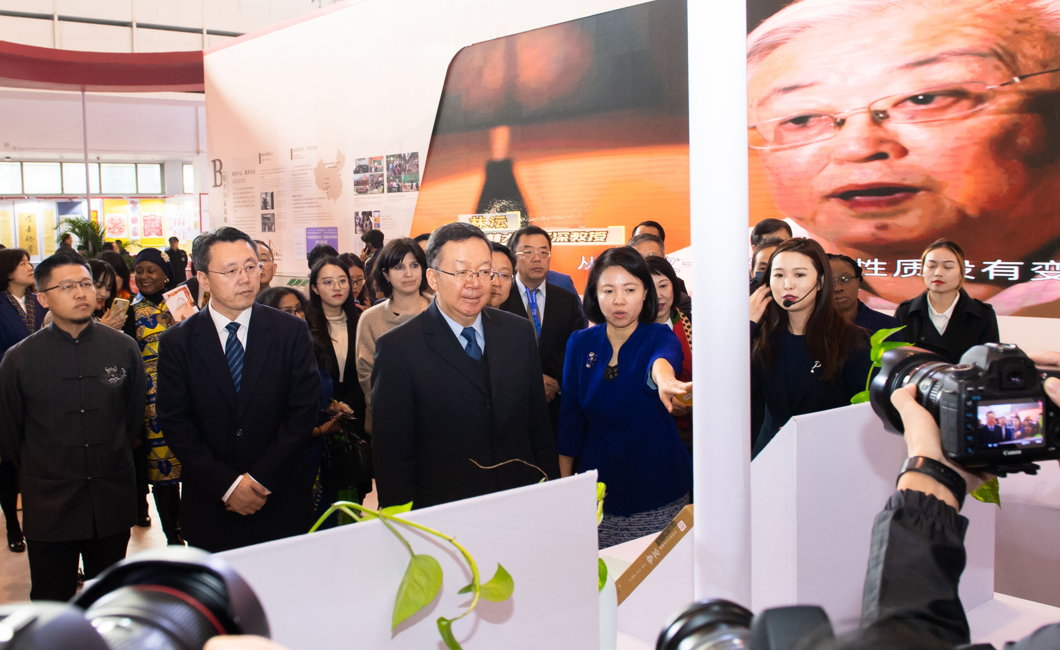 10月25日,教育部副部長(zhǎng)、國(guó)家語委主任田學(xué)軍出席第三屆中國(guó)北京國(guó)際語言文化博覽主論壇——“語言智能與語言多樣性”國(guó)際語言文化論壇開幕式,并在開幕式后赴中國(guó)國(guó)際展覽中心巡展,在現(xiàn)場(chǎng)聽取了“新中國(guó)成立七十周年語言文字事業(yè)發(fā)展成就展”介紹,參觀了科大訊飛、京津冀協(xié)同發(fā)展展區(qū)、粵港澳大灣區(qū)展區(qū)、廣西語委展區(qū)以及語言科技、語言出版、語言創(chuàng)意展,在語言藝術(shù)展演區(qū)欣賞到由首都師范大學(xué)外國(guó)留學(xué)生演出的詩(shī)詞吟誦,并在成就展”簽名樹”上簽名。