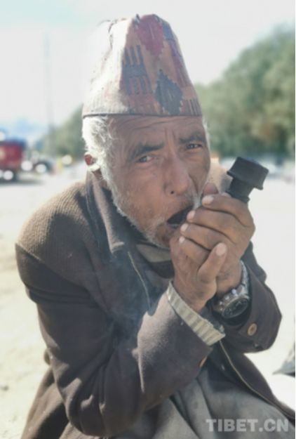 圖為普蘭邊貿(mào)市場(chǎng)邊吸煙的尼泊爾人