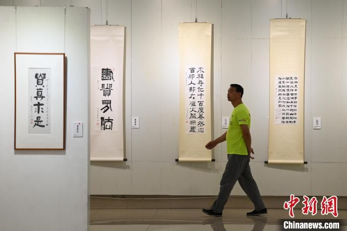 圖為觀眾參觀書法展?!『闻罾?攝