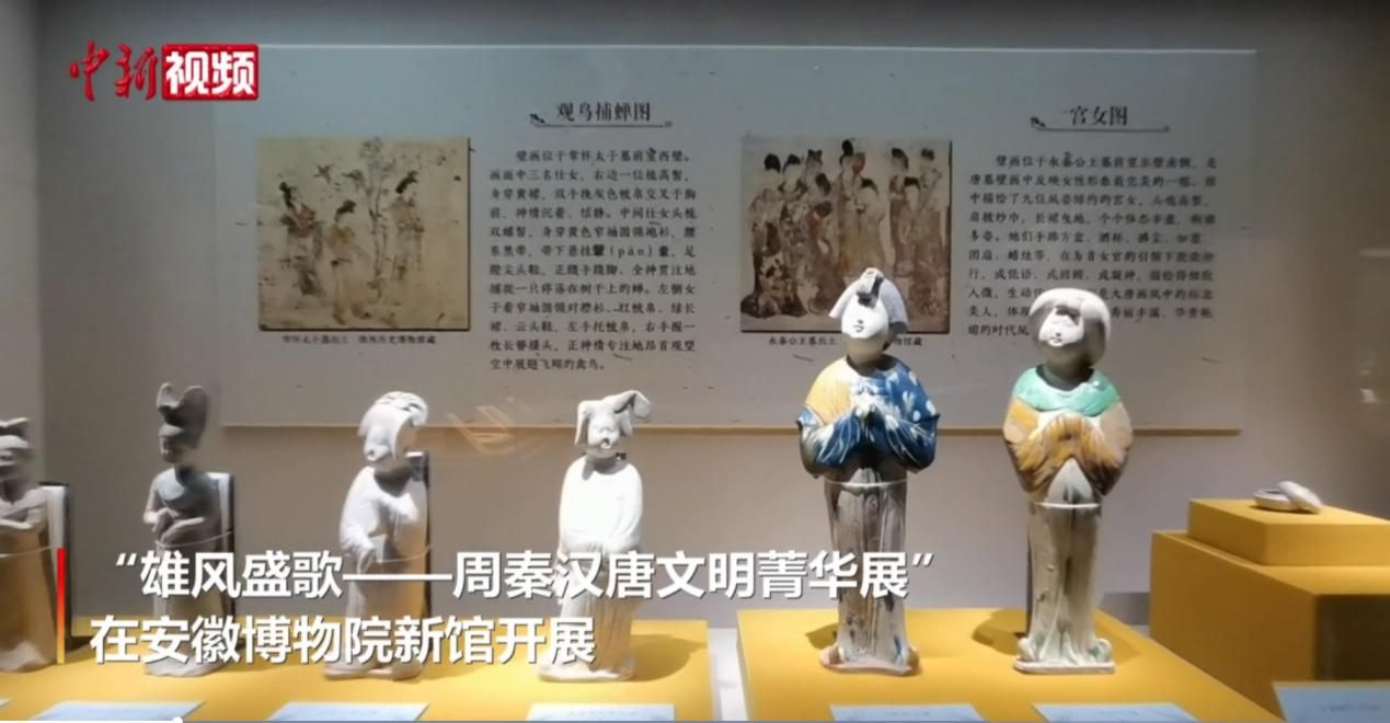 7月6日,由安徽博物院、陜西歷史博物館(陜西省文物交流中心)聯(lián)合主辦的“雄風(fēng)盛歌——周秦漢唐文明菁華展”在安徽博物院新館開展。其中,唐朝服飾和女性妝容備受觀眾喜歡。
