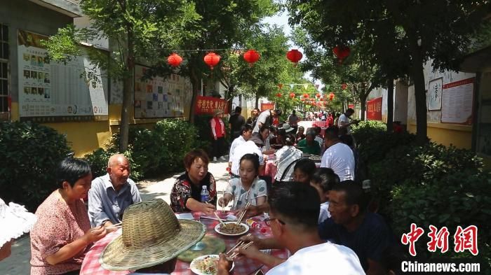 “孝善羊湯宴”將伏羊節(jié)推向高潮,當(dāng)?shù)卮迩f免費(fèi)請(qǐng)“孝善人家”代表等“喝伏羊”?!「逗?攝