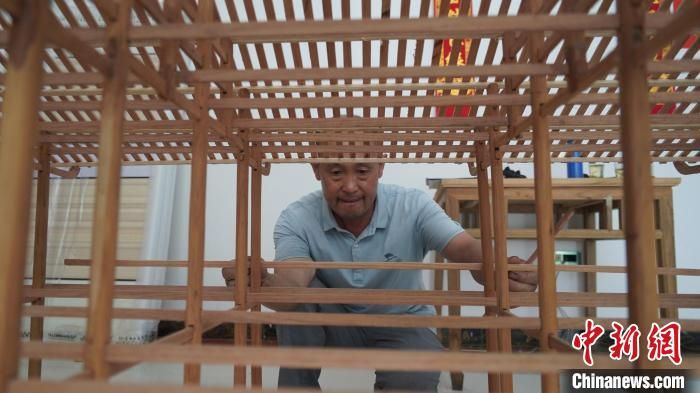 劉安喜制作吊腳樓模型 張寶訓(xùn) 攝