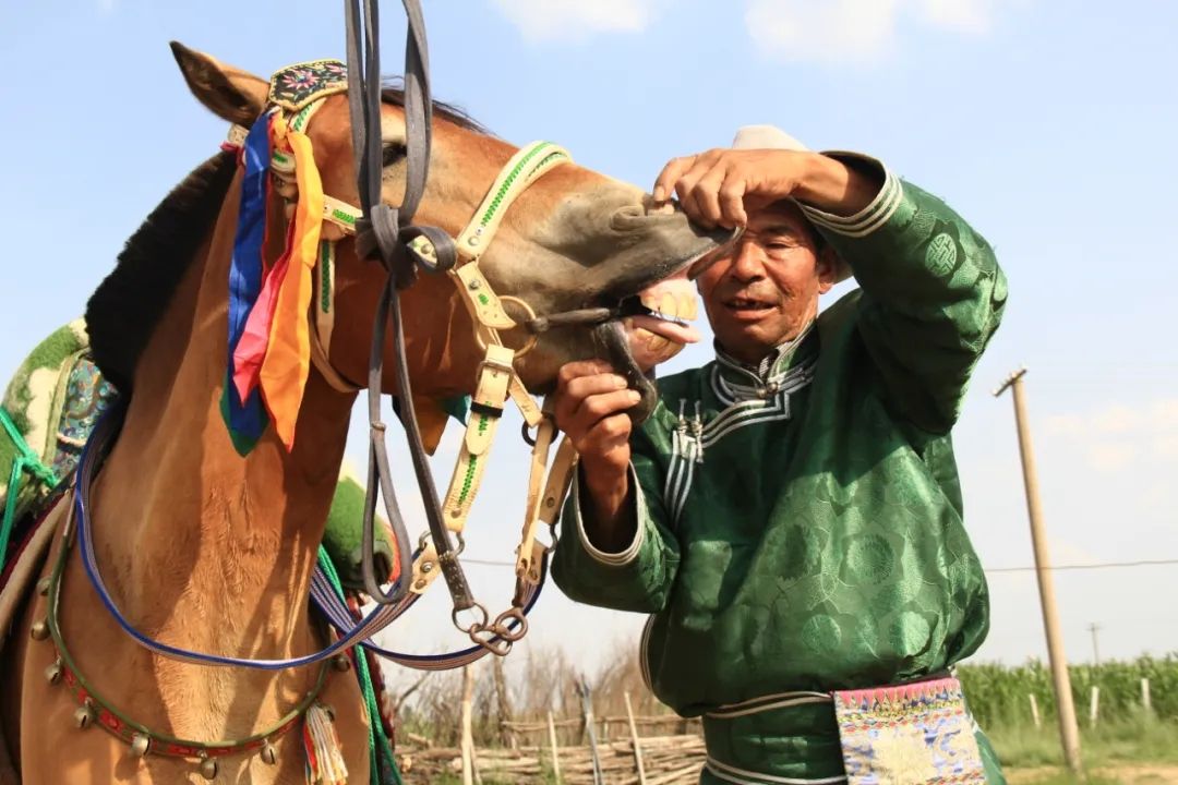 馬的交叉行走分為兩種。一般情況下,馬的右前腿和左后腿同時(shí)往前走,左前腿和右后腿并前行叫作“通西業(yè)”;左前腿和后腿并行或右前腿和后腿并行叫作“走馬式行走”。走馬分為賽布日吉擾、海日查格吉擾、德古日吉擾、塔拉吉擾、胡日頓吉擾等5種。小走是走馬中最簡(jiǎn)單的行走方式,不費(fèi)多大力氣。海日查格吉擾是在小走的基礎(chǔ)上稍微快一點(diǎn)兒的行走方式,這是馬天生的步式之一。德古日吉擾是在賽布日吉擾和海日查格吉擾的基礎(chǔ)上訓(xùn)練出來(lái)的走馬步式。把這種步式再加訓(xùn)練,比之前稍快,達(dá)到能進(jìn)入賽場(chǎng)的程度時(shí)就稱(chēng)為塔拉吉擾。馬的塔拉吉擾還存在于訓(xùn)練階段,只有經(jīng)過(guò)進(jìn)一步的訓(xùn)練才能使馬的四肢之間的距離保持均衡,成為胡日頓吉擾(快走馬)。