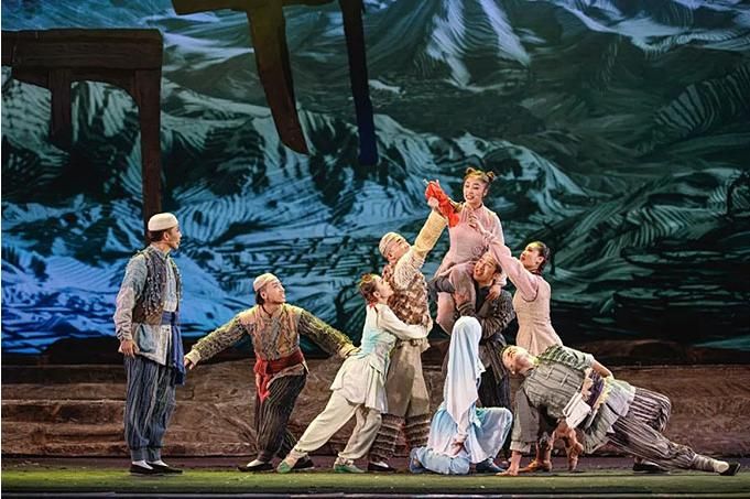 同時,作為以“花兒音樂”為主的音樂劇,該劇在發(fā)掘和弘揚民族音樂的同時,充分發(fā)揮現(xiàn)代交響樂的音樂張力、表現(xiàn)力和震撼力,賦予音樂劇以現(xiàn)代節(jié)奏,使得全劇顯示出波瀾起伏而張弛有度、潤澤細微而又縱橫捭闔的大劇格局。在舞蹈方面,該劇既能讓觀眾觀賞到柔美的迎客舞、剛勁的踏腳舞,又可見狂飆突進式的現(xiàn)代舞蹈,樂與舞的結合使得該劇更具可視性與感染力。
