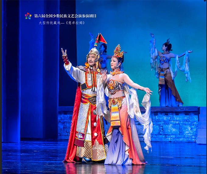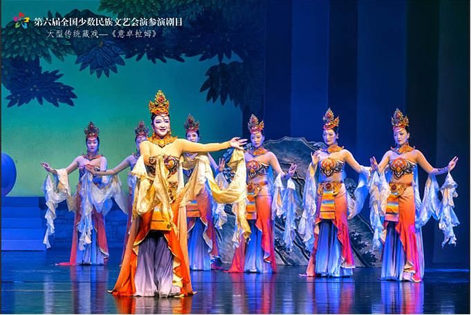 9月14日,作為第六屆全國少數民族文藝會演參演劇目,由青海省選送、青海省藏劇團(黃南藏族自治州民族歌舞劇團)創(chuàng)作演出的藏戲《意卓拉姆》在央視網和國家民委門戶網站進行演播。該劇講述了傳說中的仙女意卓拉姆與人間的諾桑王子相愛,歷經挫折與磨難后終成眷屬的愛情故事,表現出意卓拉姆對愛情的忠貞不渝和諾桑王子堅韌不拔的意志。