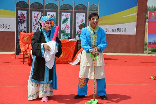 達(dá)拉特道情富有濃郁的地方色彩,生、旦、丑等行當(dāng)齊全,包括“唱、念、做、打”四功,不過由于它演唱內(nèi)容的關(guān)系,以“唱、念、做”三功為主。音樂體制主要為曲牌連綴體,同時(shí)吸收了地方小戲與北路梆子的音樂元素,又兼有地方大戲的部分唱腔曲調(diào),演唱方式以坐唱為主,樂器伴奏分為文場和武場,音樂婉轉(zhuǎn)纏綿、節(jié)奏明快,曲調(diào)開朗而流暢,唱白多運(yùn)用地方方言,藝術(shù)風(fēng)格柔美而抒情,充盈了濃郁的鄉(xiāng)土生活氣息。