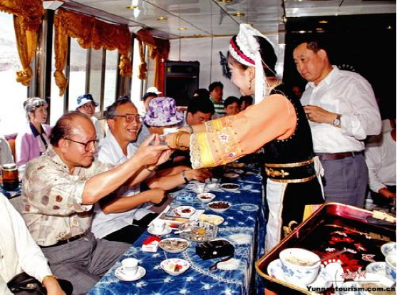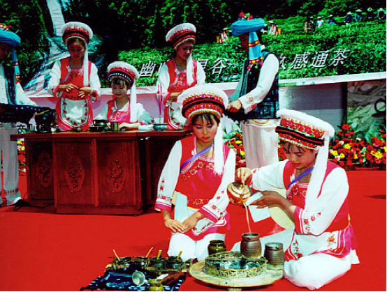 白族熱情好客,先客后主是白族待客的禮節(jié)。家中來了客人,以酒、茶相待。著名的“三道茶”就是白族的待客禮。但白族人倒茶一般只倒半杯,倒酒則需滿杯,他們認為“酒滿敬人,茶滿欺人”。受到白族人熱情的款待,應(yīng)說聲“挪衛(wèi)你(謝謝)”來表示你的謝意和感激之情。