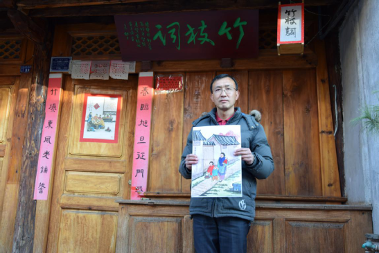 張旭東的童年,是在祖父母的耳提面命中度過的,他跟隨老人習(xí)書繪畫,學(xué)禮明俗。到了弱冠之年,他逐一拜訪古鎮(zhèn)中尚在的民國時(shí)期出生的老輩文人,向他們請教劍川白族傳統(tǒng)民俗,并做了系統(tǒng)梳理,這也為他后來繪制年畫、撰寫春聯(lián)打下扎實(shí)的理論基礎(chǔ)。