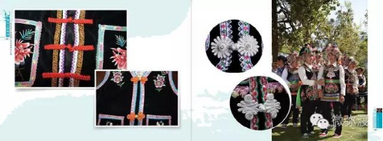 “羅羅潑支”男女服飾的特點:“羅羅潑”男子服飾與“迷撒潑”相差無幾,一般不戴白頭巾。但是婦女的服飾相差卻很大,明顯保留著古樸高雅的南詔遺風(fēng)。頭飾由桂花、包頭、飄帶、大墜子、蜜蜂墜、芝麻鈴組成。桂花墊子在裱布上蒙黑色面料,中間訂有銀飾。包頭以黑色為主,長約2米,后鏈系于包頭,鏈子為銀制。飄帶長約4尺,黑色留花邊,兩頭訂英蘇。包頭還系有大墜子、蜜蜂墜各一對,芝麻鈴20個。領(lǐng)合由裱布黑色面料上訂芝麻玲20個圍在脖子上。圍腰的前胸部,由領(lǐng)口至腹部,左右各垂掛一條綴有串珠、針筒、響篾(口弦)一類飾品和生活用品的銀質(zhì)項鏈。人一走動,全身的小蘇鈴就響,聲音悅耳動聽,形象美觀大方。額頭前還圍有一塊翠綠色的“桂花綁”,綁上釘有銀質(zhì)小泡泡200多顆,羅羅潑支婦女的服飾彰顯華麗之美。