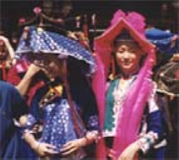 惠東女服飾文化源遠流長,其形成、發(fā)展過程一直是中外人類學(xué)、民俗學(xué)專家關(guān)注的課題。其來源有種種傳說,目前尚無定論。據(jù)史料記載,清代中后期,惠東婦女上穿黑色或紫色長袖挖襟衫,下穿黑色大折褲。衣長、胸、腰背寬闊,下沿稍呈弧形外展,與清代流行的“大夫衫”(長式挖襟衫)類似。不同的是袖口偏窄,袖子接長,故名“接袖衫”又名“卷袖衫”接袖的用意十分有趣,為的是讓新娘入洞房時提起長袖以遮掩一臉羞紅;過了3日,才在長袖一半處翻卷逢住固定。到了清未“接袖衫”各部分略為收縮,衣沿弧度加長,臂圍寬度加闊并向外彎展,腰圍處的中式紐攀減少,兩個連在一起,袖口繞藍布邊。領(lǐng)圍上刺繡圖案由簡變繁,領(lǐng)根下方形色布改為三角形。胸、背中線兩側(cè)綴做兩塊方形黑色、深褐色綢布,其四邊各鑲接一塊三色形色布,改稱“綴做衫”。褲子為“大折褲”又名“大筒褲”,俗稱“漢裝褲”。褲一般用黑色布,也有用藍色的。褲腳寬約1.2尺,褲頭約2尺,縫一道5寸的藍色布邊。其樣式從清代中后期至今沒有多大變化,惟質(zhì)料由舊時用粗布,今天改為通用黑綢布?;輺|女服飾,歷來重視腰以上部分,特別以頭飾最為突出,花樣繁多,不同場合、不同年齡的頭飾有明顯區(qū)別。