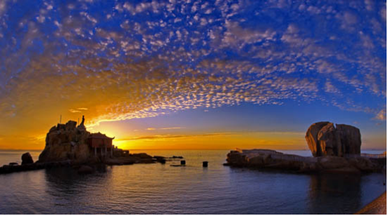 屬長樂市江田鎮(zhèn),與文武沙鎮(zhèn)交界。黃沙碓因巖石呈黃色、金色沙灘而得名。車行至長樂下沙漫步沙灘經(jīng)文武砂灘和有長達(dá)千米的十八孔水閘堤壩雄偉壯觀的“云母礁”和高達(dá)9米的媽祖神像的廟宇,壩內(nèi)有秀麗的淡水湖,無垠的沃野,金色的沙灘,千米的海提交融成絕佳的風(fēng)景。