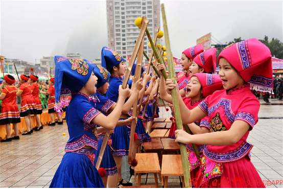 都安縣500名群眾歡聚一堂,打起扁擔,喜迎“三月三”。